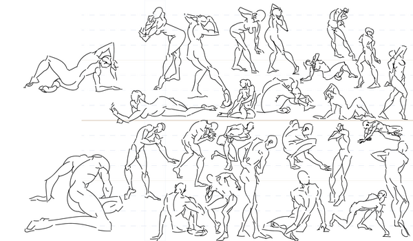 PenBee and I held our weekly stream today, and during that stream (and shortly thereafter), I managed to get 130 figures drawn, mostly on my newsprint pad.