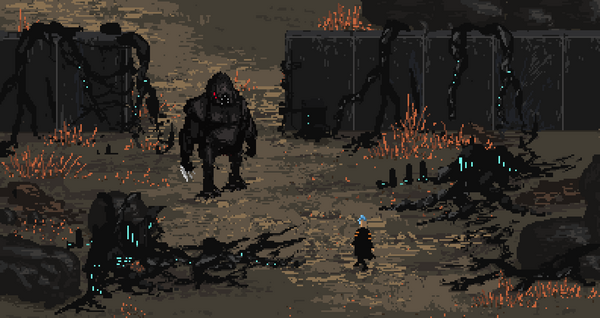 Revisited a scene from the last days and added a few machine tentacles and a new enemy.