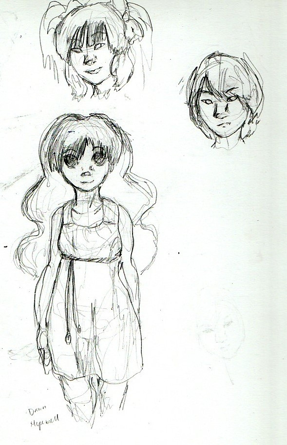 the bae and i stayed up all night playing this dumb game called princess maker 2. we have experienced the woes of parenthood. here is our precious daughter, dawn hopewell. also face doodles of the rook above her. i think i was just over-complicating how to draw this face, it looks fine here.