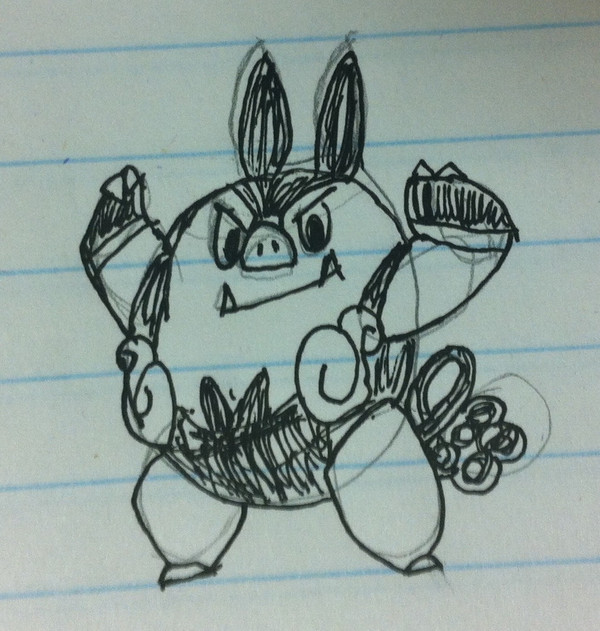 #623 Golurk - screwed up portions. pose is tricky and the tapered torso didn't help. still need to work on big, rounded shapes in general.