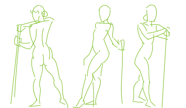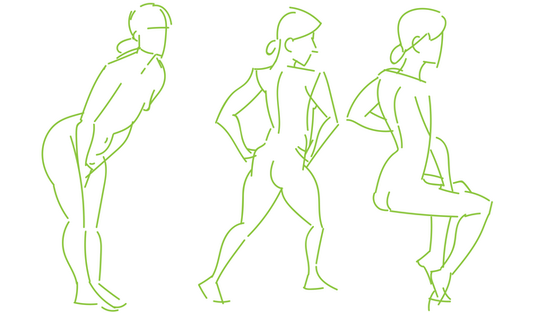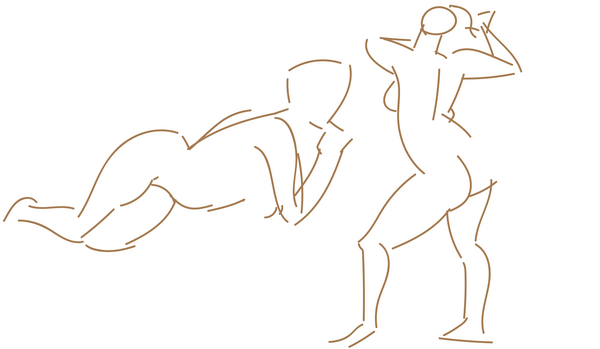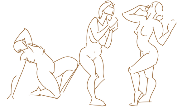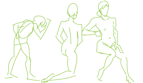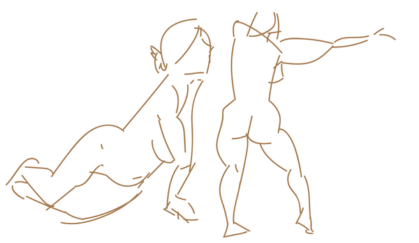 When I work on croquis, I make a special effort to loosen the grip on my stylus and draw with my arm outstretched. I'm hoping to gain better control over sweeping curves and more precision when I put lines on the page. I still have trouble keeping the drawing confined to the canvas...