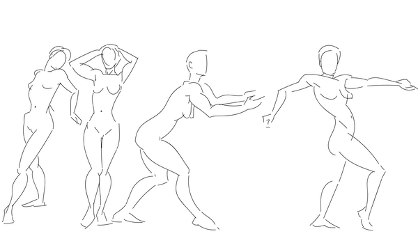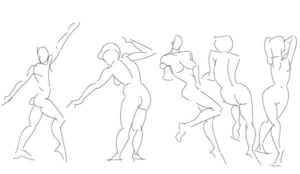 Today's starting croquis gave me a little more trouble than usual despite the poses being fairly simple. I experimented with changing my grip for the first five sketches - I normally hold my pen in a loose tripod grip, and switched to an overhand grip for those sketches. I've got a lot more to learn!
