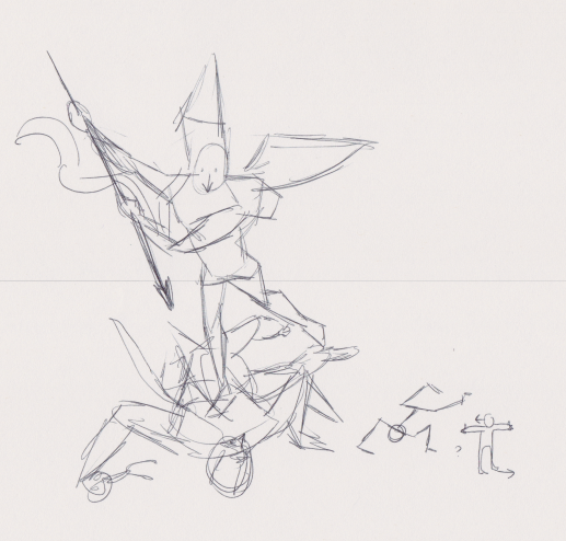 Looked at the shapes in Raphael's Le Grand Saint Michel for something else that I want to do at some point. Noticed that the Satan figure in the bottom has the torso twisted in a pretty weird way, or at least the way the legs were, I thought so. Gave me an idea for the thing I was thinking about though, so we'll see how that goes I guess.