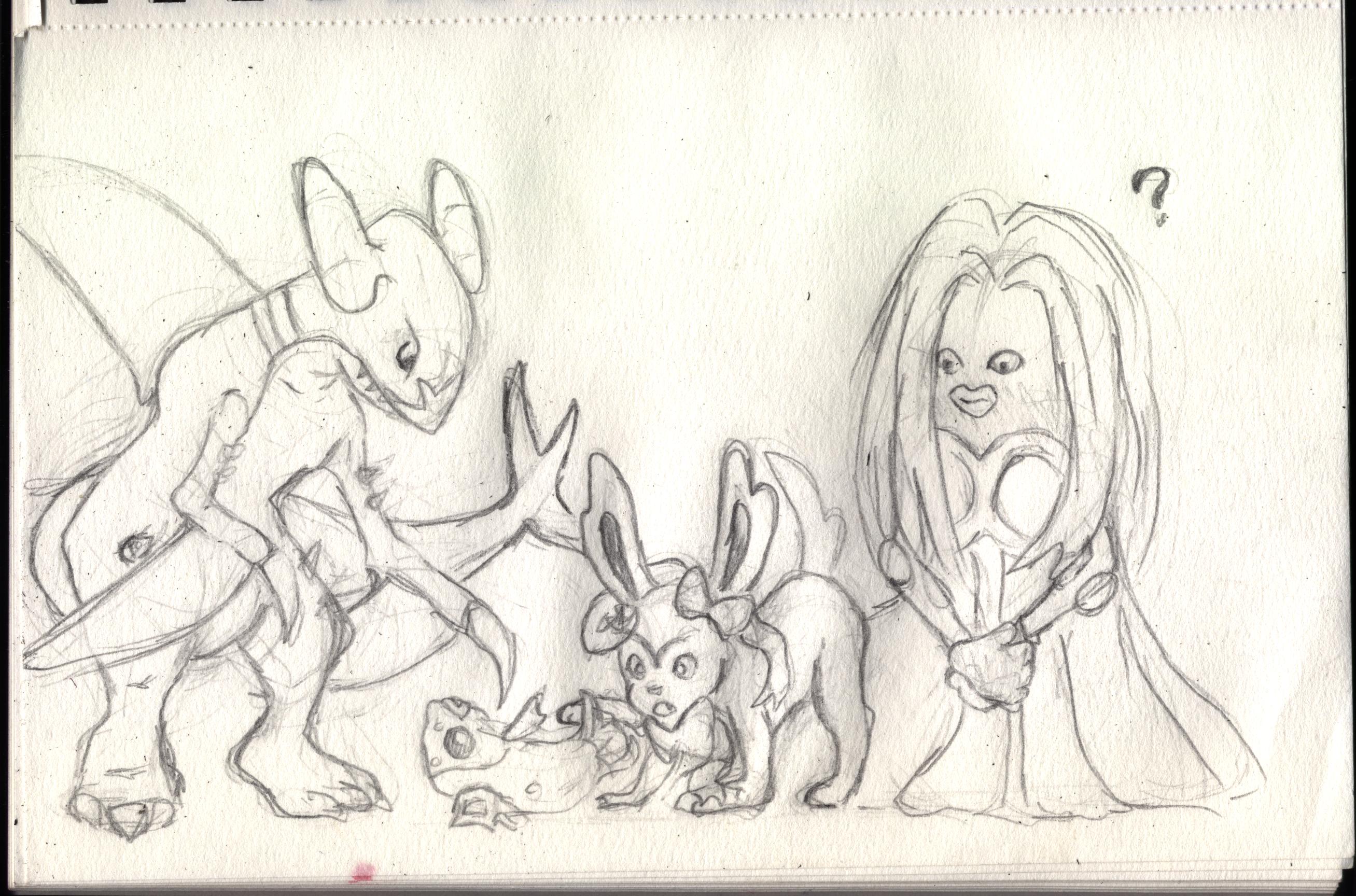 Least favorite Pokemon. That's a Feebas on the ground. I got too ambitious and kinda gave up on that Jynx. I'll probably redo all of these, it was just hard to squish them in on one page.
