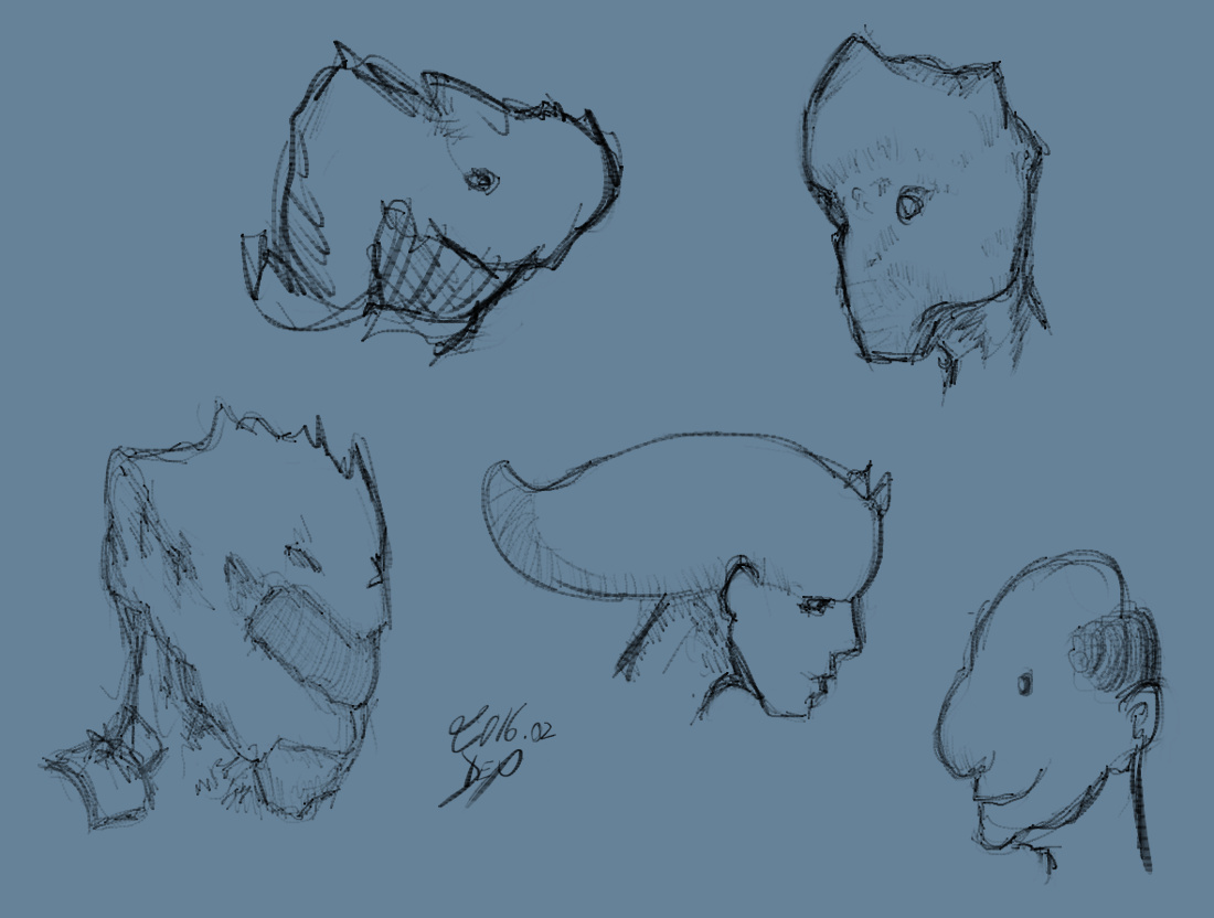 still suffering from disco lighting, but worked out technique for getting the tiles not looking super shit. also trying some ideas for character designs.