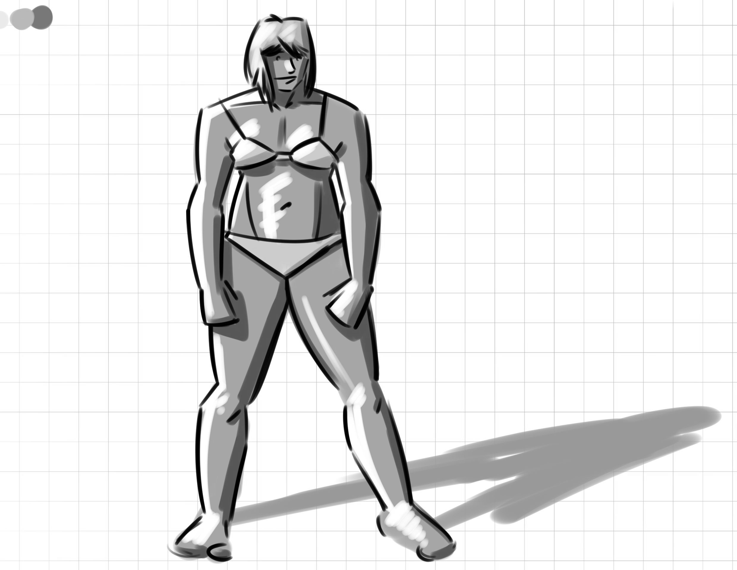 Today's experiment was seeing if I could paint with greys, then figure out the filter and clipping that would let me paint over with one tone (the end result changing depending on the grey underneath.) Succeeded this time!