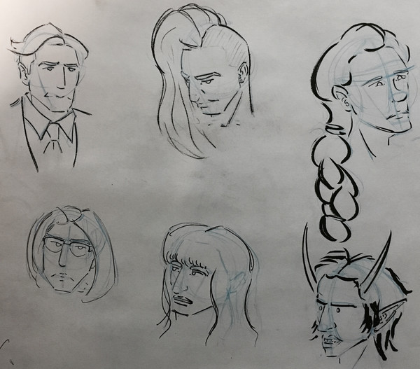 Thanks! You're way too nice! I was a little fuzzy on my complaints, so we ~may~ be in agreement. I liked the ones I did the day before, those blue under-sketches. Like you mentioned, I like that I'm gaining some skill in turning heads in my mind (without a reference, even!) I just really hate the ink that went over the blue lines!