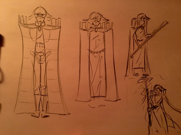 @artbohemian HAHA!!! I didn't even realize that that's EXACTLY what my subconscious was doing (that first design especially), using Dark Souls aesthetic. Ha. And I feel the same way you did with the eye-rolling drawing. Quickly going from "I think I got this" to "oh no no no no, I do not got this." I mostly just wanted to see if there was a way to get those rook prongs onto an outfit. Tricky. Kinda dorky.