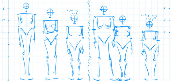 First pass at height (in feet) and height (in heads.) I'm gonna try to draw actual bodies tonight, but I'm really tired -_-