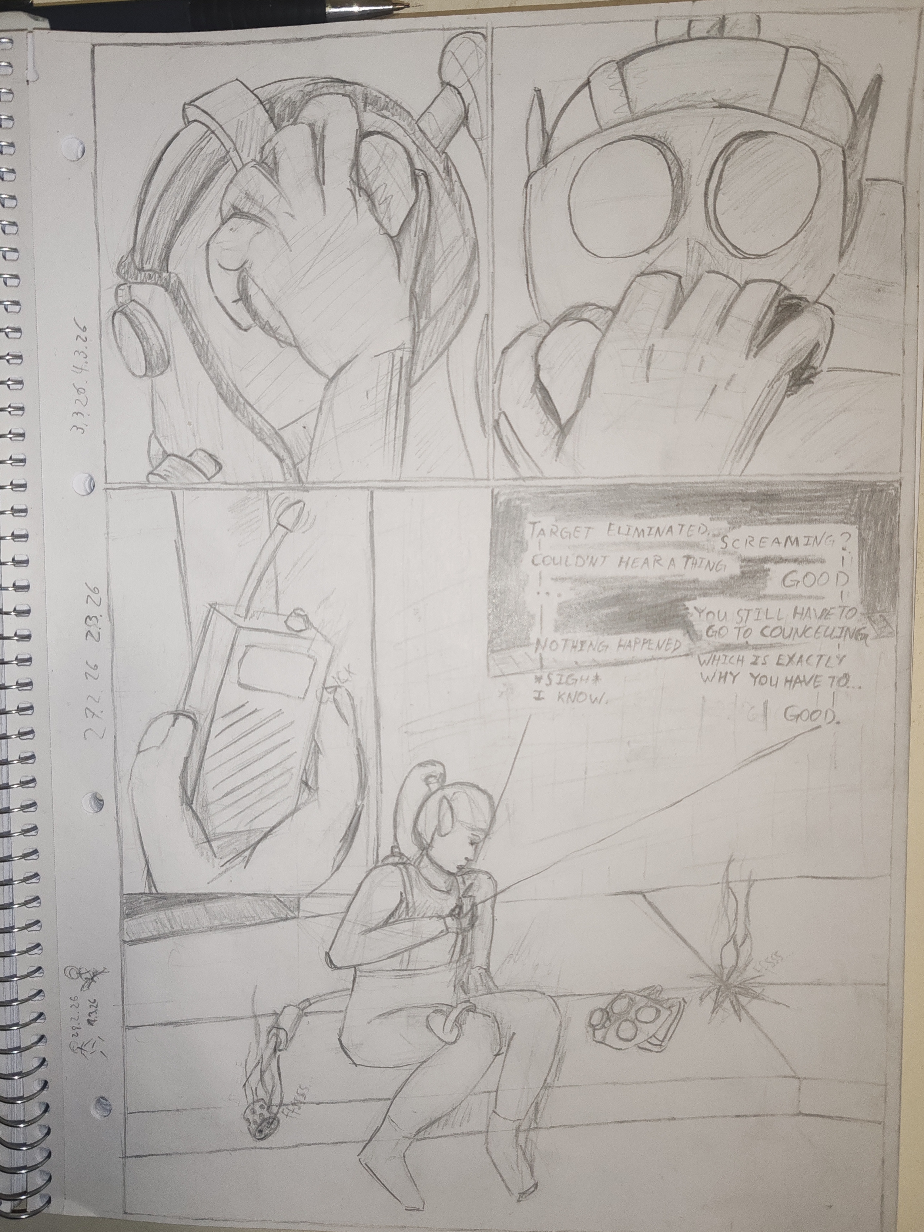 Also decided to add in the initial draft I sketched. Out in the beginning. The only thing that's really changed from there is this final panel, which I had focused a lot more on the characters head.