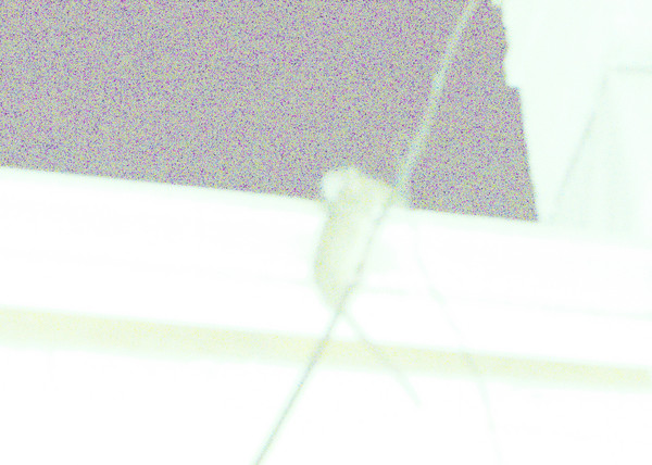 Very distorted green image of a rat on a wire. Why not go abstract with it. Artifice forever!